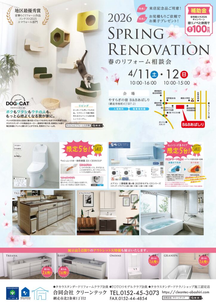 網走市のリフォームや清掃は